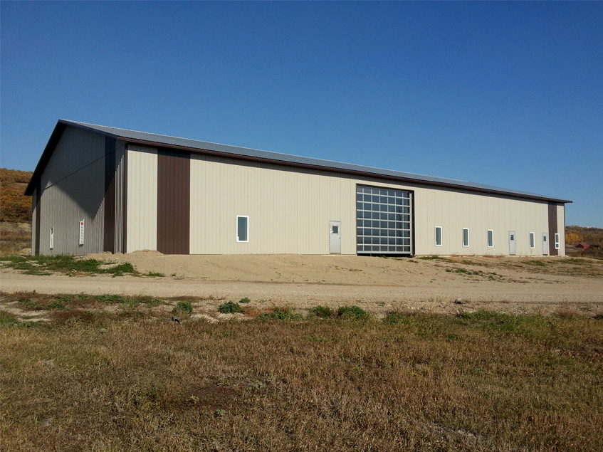 Heritage Co-op Minnedosa supplied the product for the Town of Minnedosa Maintenance Shop. This Post Frame Building is 80’ x 152 ‘ with 18’ walls and 2 – 20’ overhead doors on the eave sides. All-Fab supplied roof trusses, posts and Glulam beams.