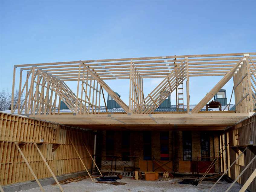 The addition to the Children’s Museum at The Forks in Winnipeg was an extremely challenging and interesting project. The overall height of the three piece truss system is an overwhelming 40’ and has 166 different truss types.